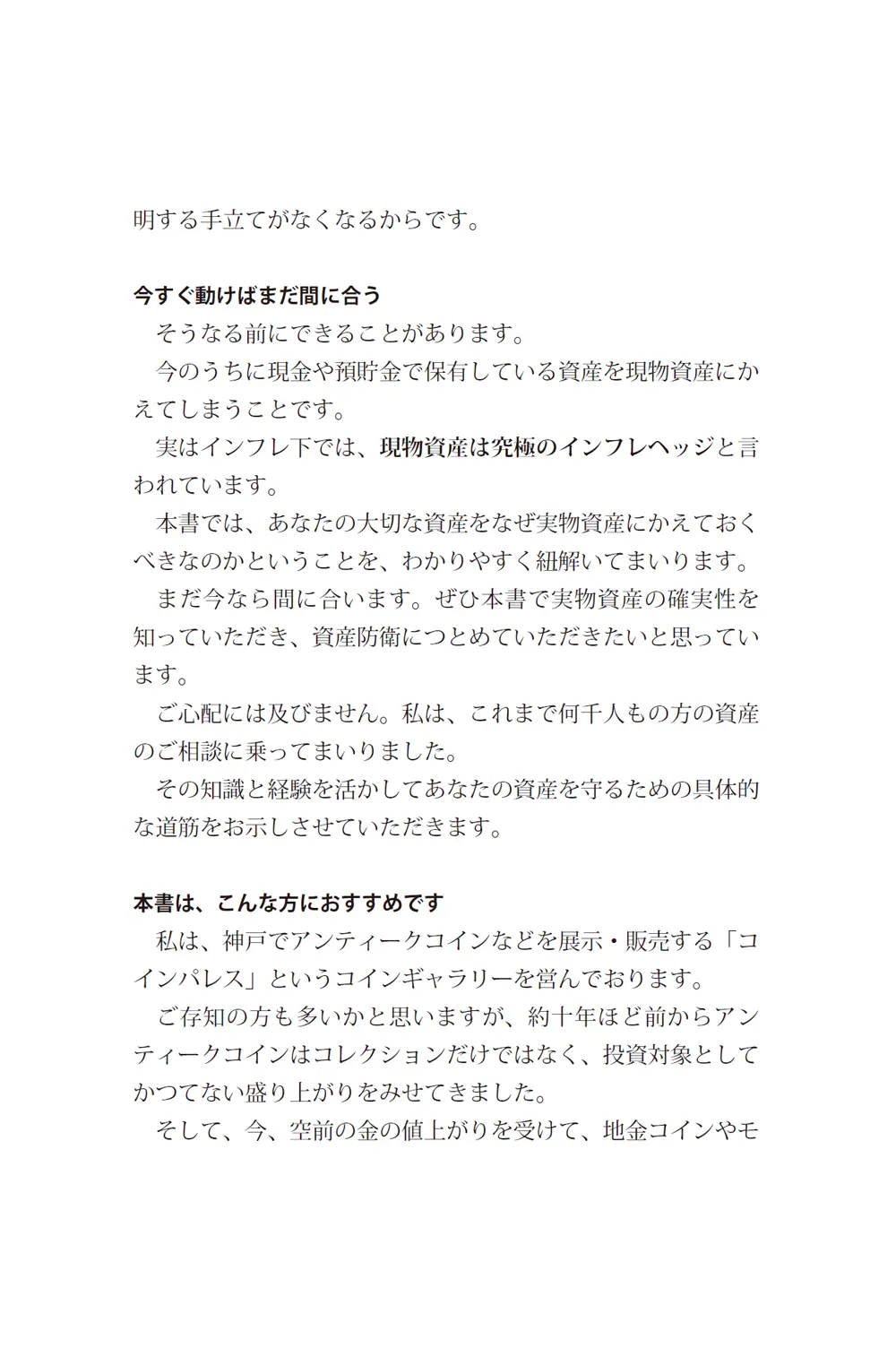 お金の価値が揺らぐ今、現金だけでは資産を守り切れません。時代を超えて人々に選ばれ続けてきた「金」。本書では、世界が震えた「解放の日」を転機に、12人の女性たちが金貨を選んだ物語を辿ります。インフレや通貨不安などの現代リスクに備え、資産を守る考え方から家族へ受け継ぐヒントまで、未来を見据える知恵が詰まった一冊。