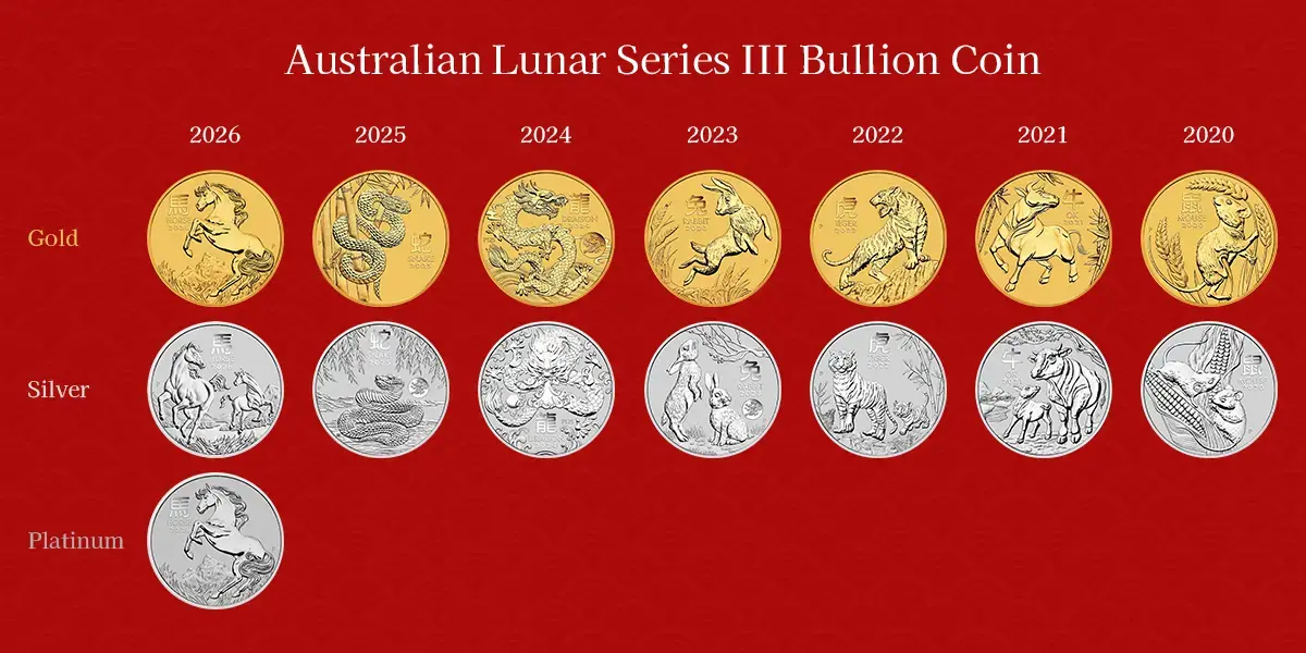 パースミントのオーストラリア・ルナーシリーズは、中国の十二支に基づいてデザインされています。毎年の新作発行はコイン収集家を魅了し、12年にわたるシリーズが継続している理由ともなっています。