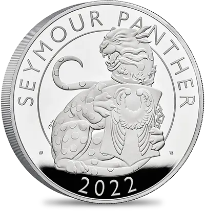 コイン裏面に描かれた力強い豹は、英国王位の象徴に相応しい偉容を表現しています。