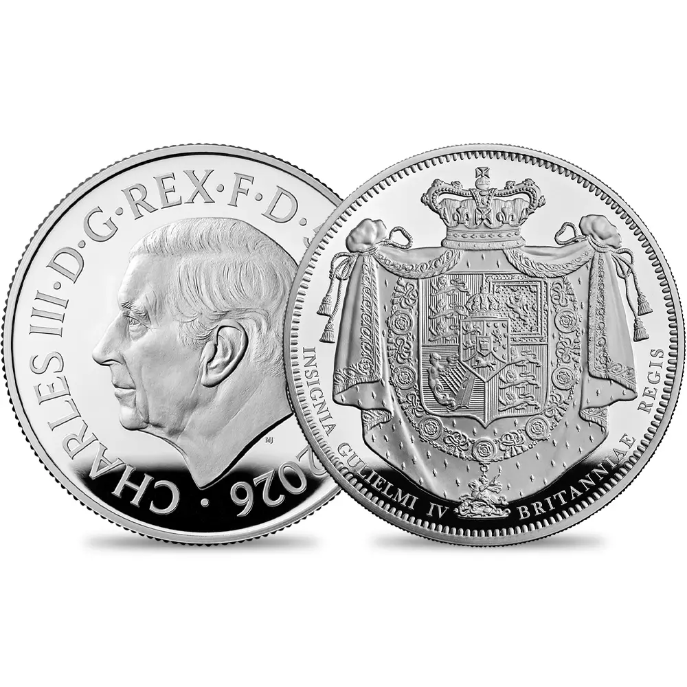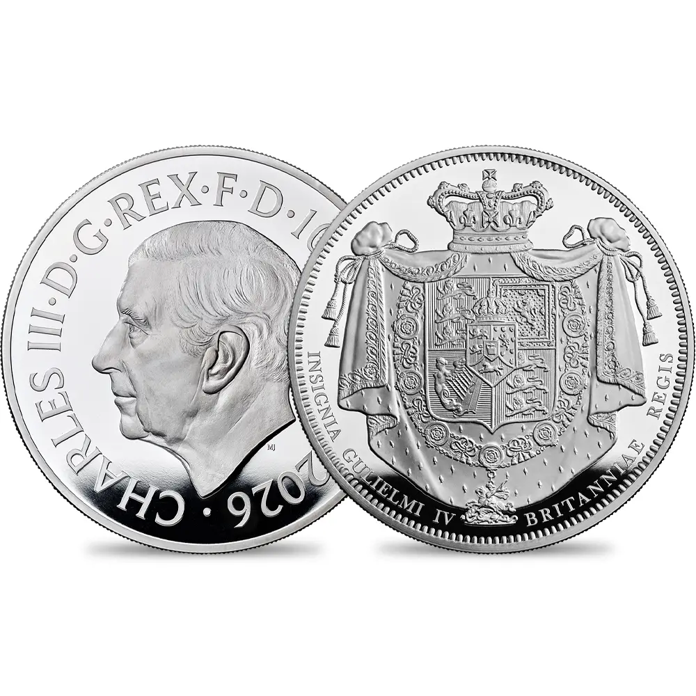 イギリス 2026 チャールズ3世 ウィリアム4世クラウン 10ポンド5オンスプルーフ銀貨 未鑑定 箱付き【ご予約承り品】 タイプ:プルーフ 品位:約99.9%Ag