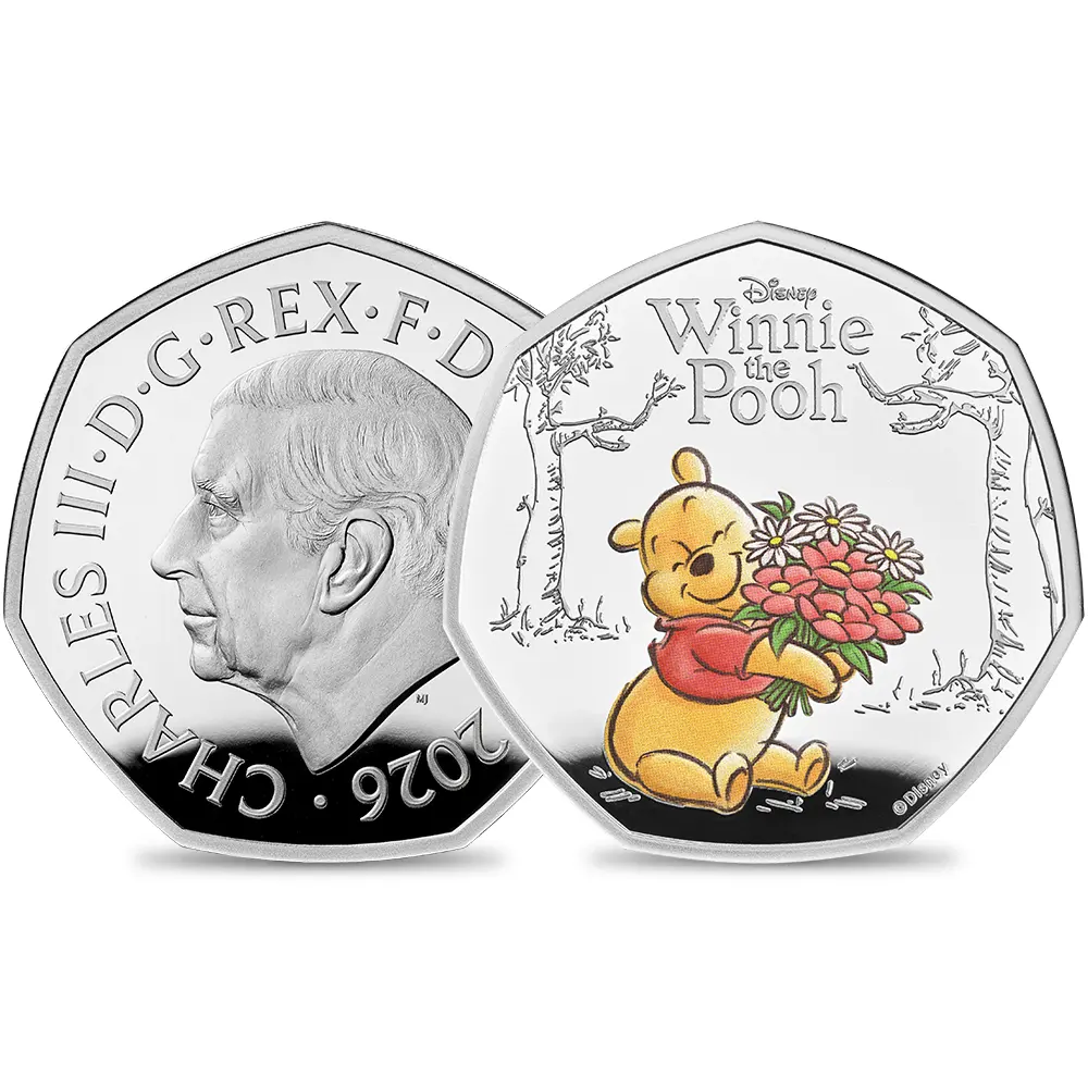 イギリス 2026 チャールズ3世 くまのプーさん100周年記念 50ペンスプルーフカラー銀貨 未鑑定 箱付き【ご予約承り品】 タイプ:プルーフカラー 品位:約92.5%Ag(スターリングシルバー)